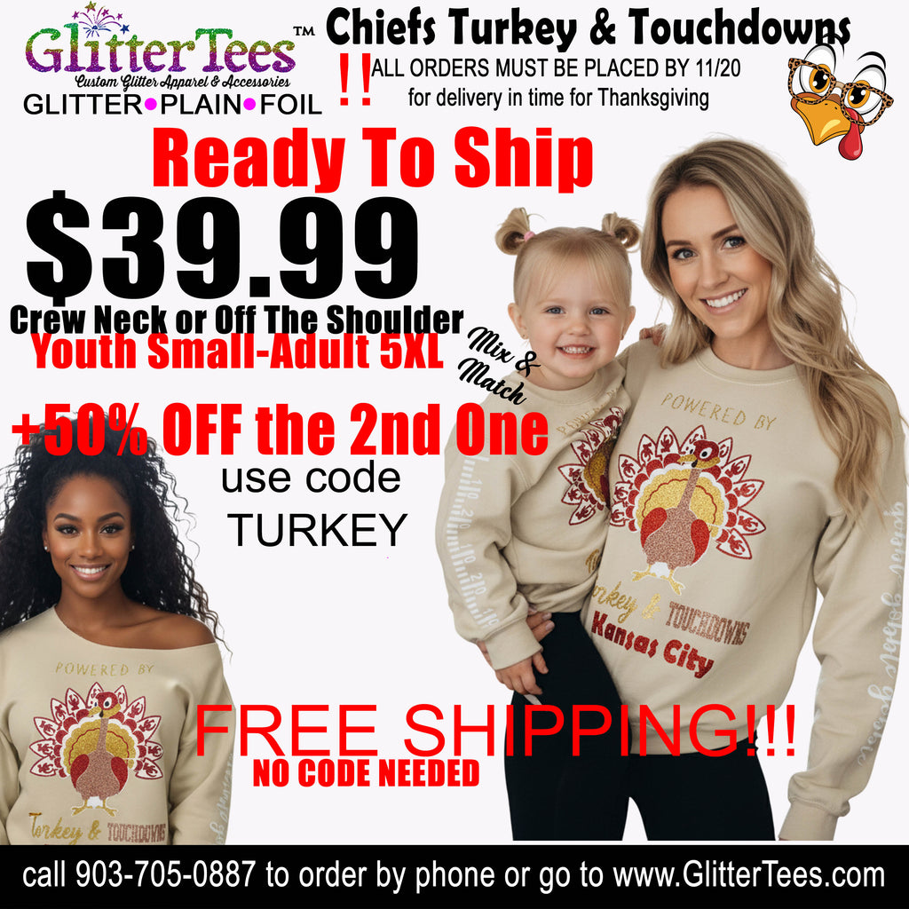 Chiefs Turkey & Touchdowns Off the shoulder sweatshirt